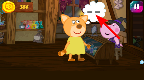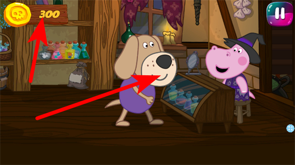 3、进入魔法商店后,与小狗角色互动,可获得金币奖励,金币数量会显示在左上角。