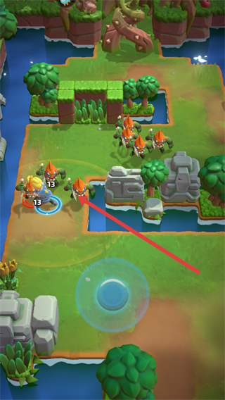 1、操作上通过拖动摇杆控制骑士移动方向,靠近即可拾取地上武器。