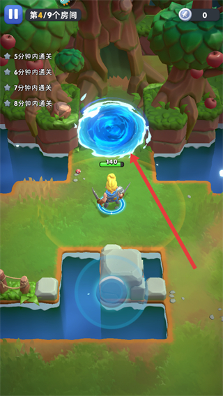 4、通关房间后会出现蓝色传送门,进入可前往下一个房间继续挑战,在规定时间内通关可获取更高星级奖励。