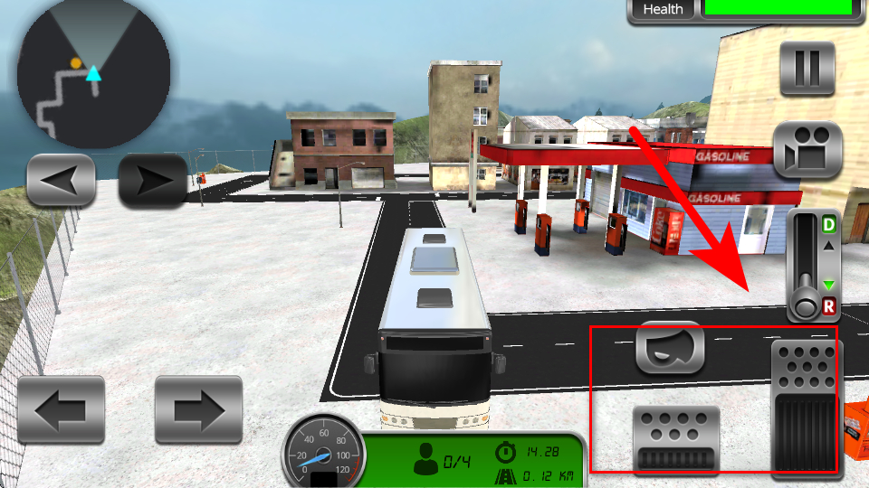 4、利用右侧的按钮控制巴士的加速、刹车等操作,驾驶巴士在道路上行驶。