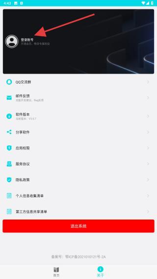 2、在关于界面,点击登录账号选项,进入登录准备页面。