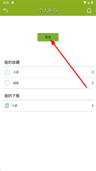 3、在个人中心页面,点击登录选项按钮,进入登录页面。
