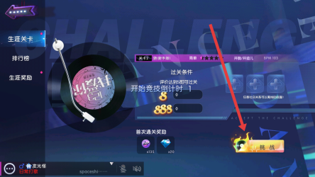 2、如果玩家账号满足进入生涯关卡的条件,接下来可以点击挑战按钮,开启音乐玩法。