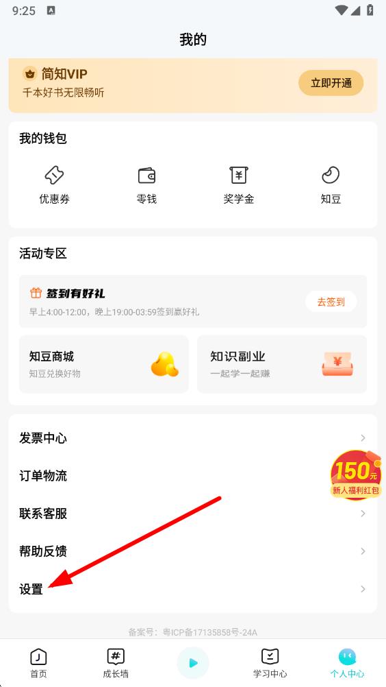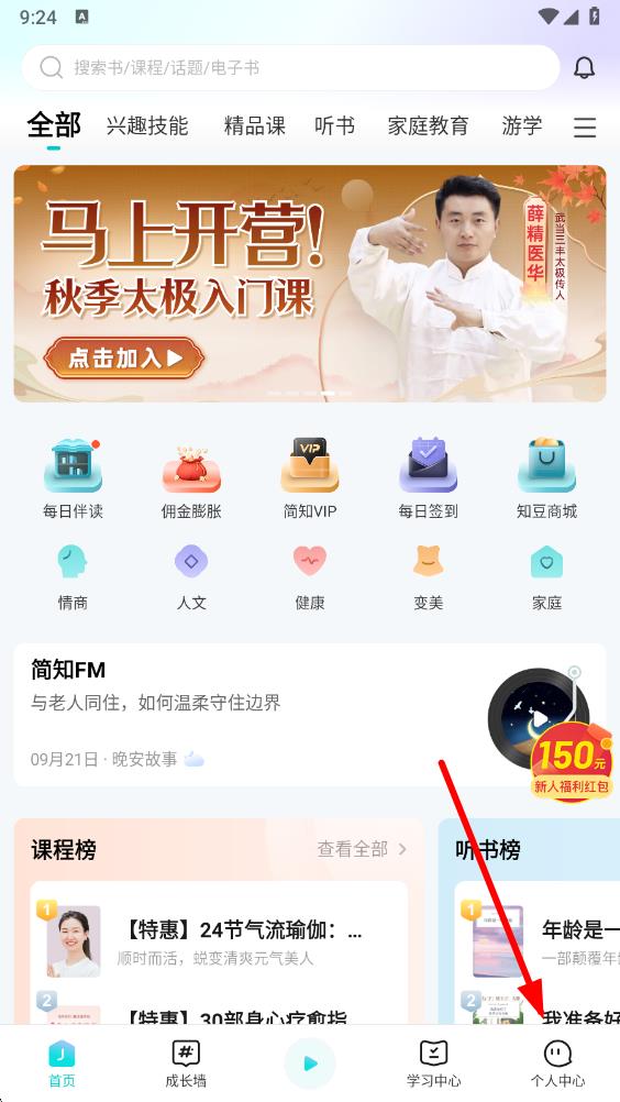 1、打开简知app,点击底部导航栏中的个人中心,进入个人相关页面。