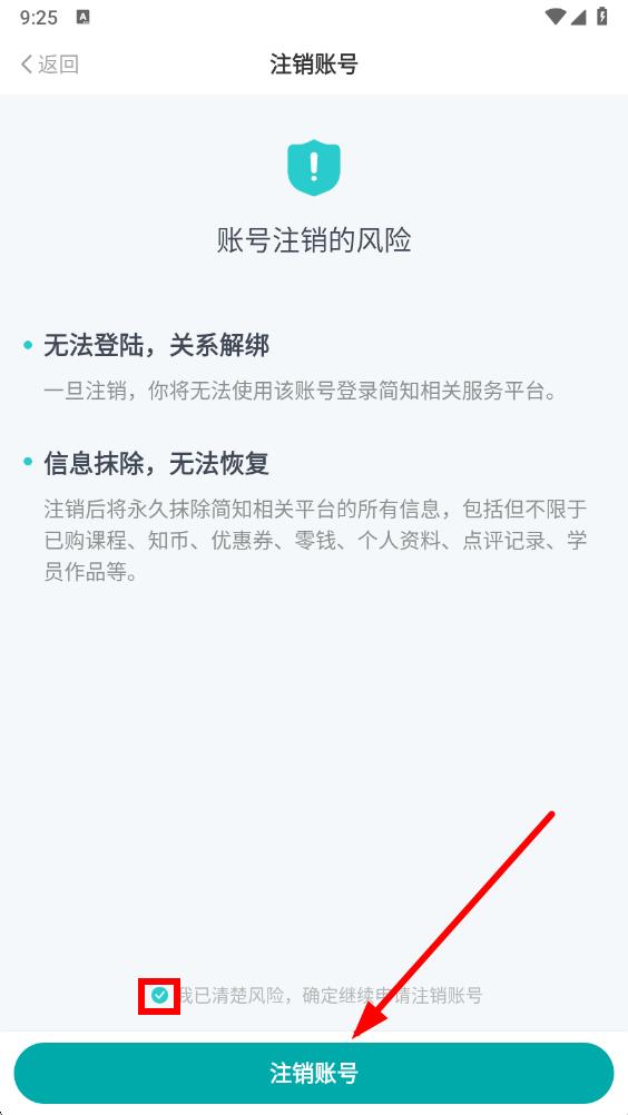 5、在注销账号页面,勾选我已清楚风险,确定继续申请注销账号,点击注销账号按钮,按照后续提示完成账号注销操作。