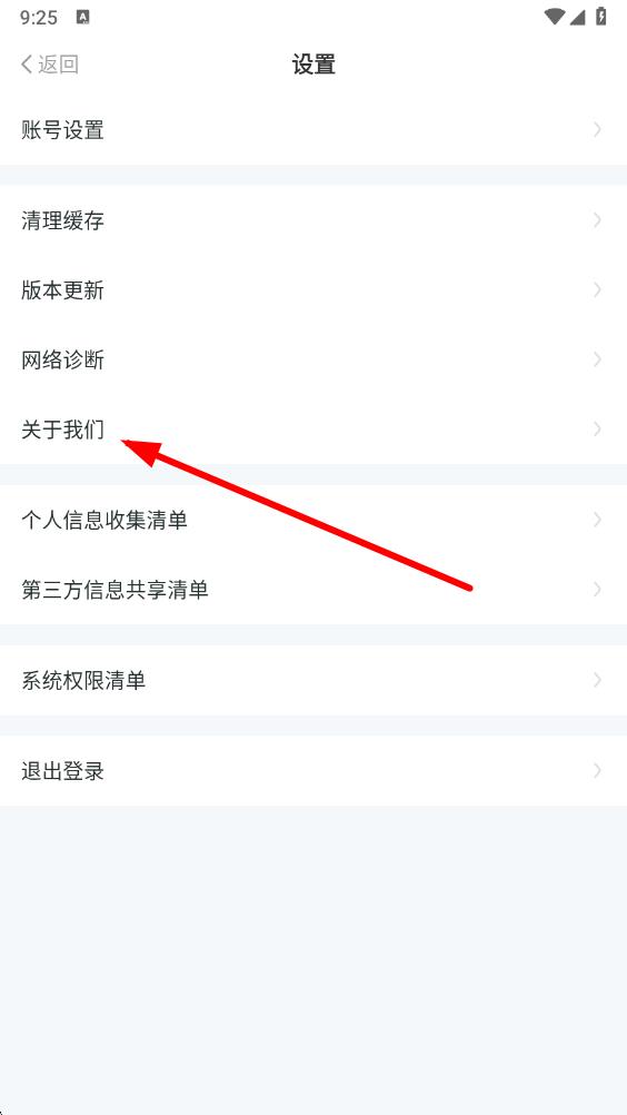 3、在设置页面中,点击关于我们选项,进入相关介绍页面。