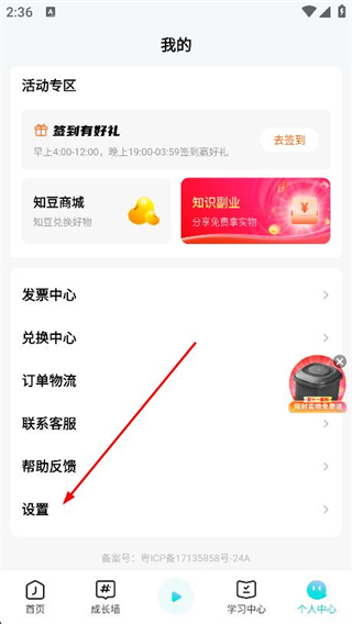 2、在个人中心页面里,找到并点击设置选项,进入设置界面。