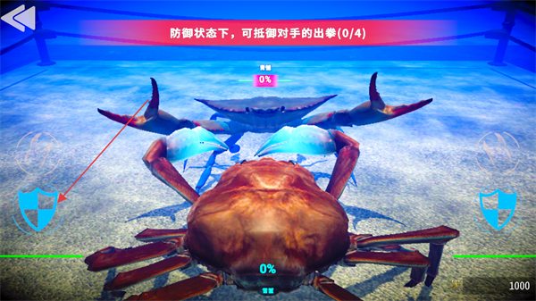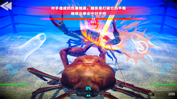 1、根据提示,点击画面左侧或右侧区域出拳,操控螃蟹攻击对手。