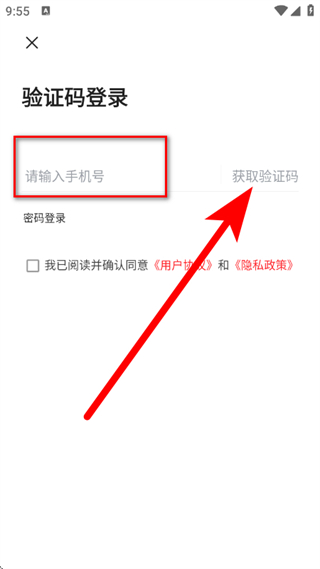 3、在验证码登录页面,输入手机号,点击获取验证码。