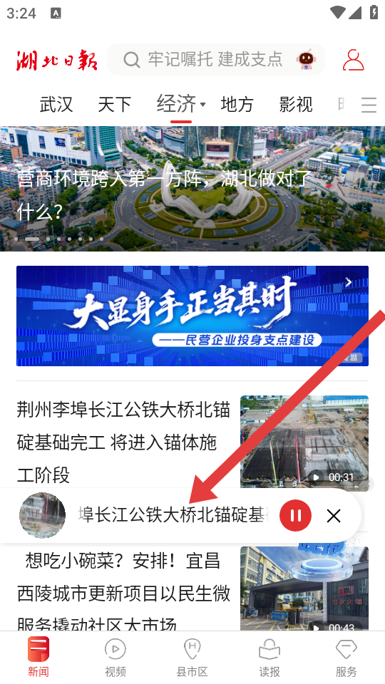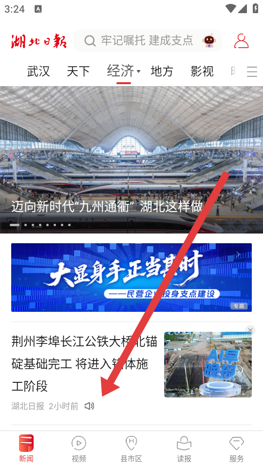 1、打开湖北日报APP,在新闻的页面中,找到带有音量标识的新闻报道,点击该新闻。