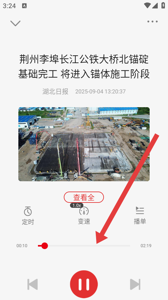 3、在播放界面可以查看新闻内容,还能调节播放进度、设置定时或变速等,从而聆听新闻报道。