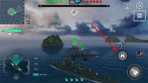 2、点击右侧望远镜按钮,可放大视野,侦查远处的敌方战舰位置。