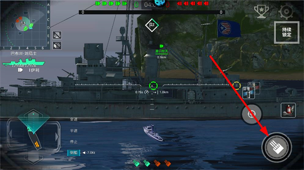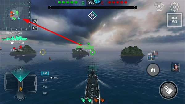 1、通过左侧操控区域调整战舰速度,可选择全速、半速、停止、倒船等状态。