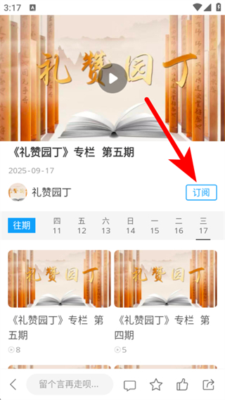 3、在节目列表中选择目标节目如礼赞园丁专栏,点击进入节目详情页。