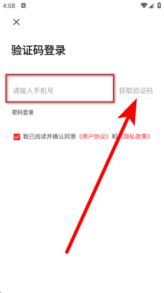 3、在验证码登录页面,输入手机号,点击获取验证码。