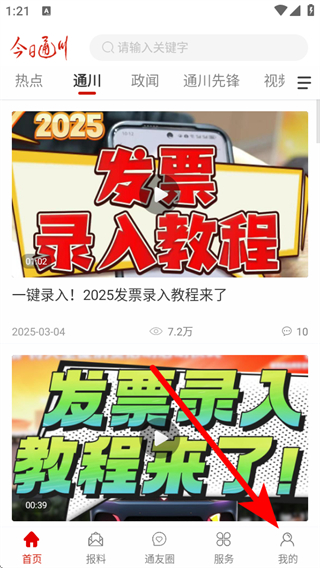 1、打开今日通川APP首页,点击底部我的,进入个人的页面。