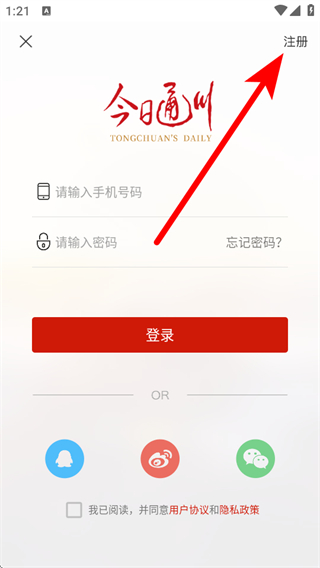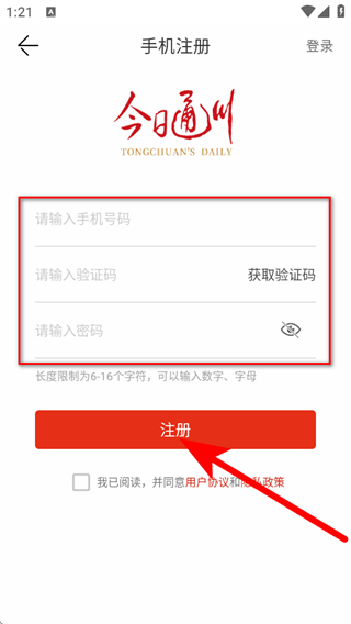 今日通川app怎么注册账号和密码