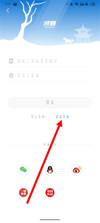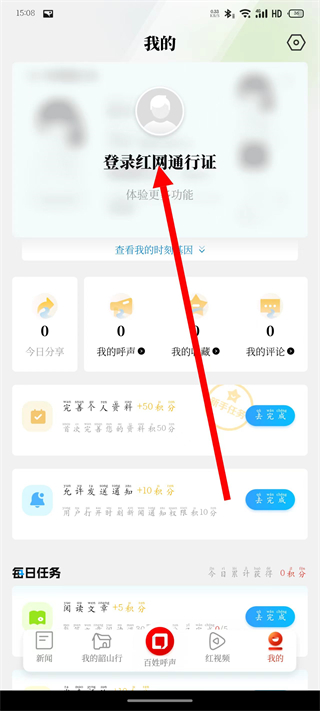2、在个人页面,点击登录红网通行证,进入登录页面。