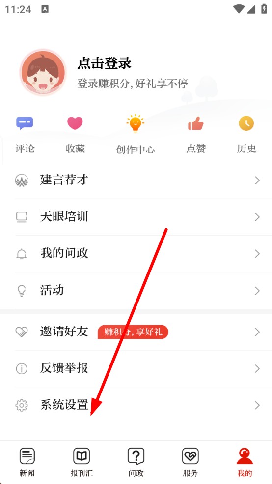 1、打开天眼新闻app,点击底部我的,进入个人的页面。