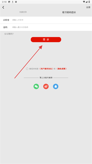3、输入手机号、验证码后,点击登录的按钮即可。