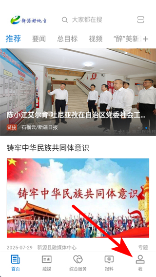 1、打开新源好地方首页,点击底部导航栏的我,进入个人页面。