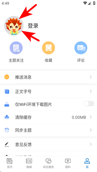 2、在个人的页面,需要点击登录的区域,进入登录注册选择界面。