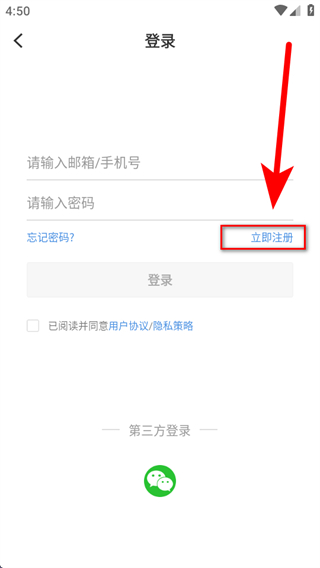 3、在登录注册选择界面,点击立即注册,进入账号注册信息填写页面。