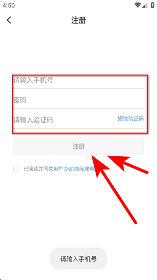 4、在填写页面依次输入手机号等信息后,点击注册完成注册操作。