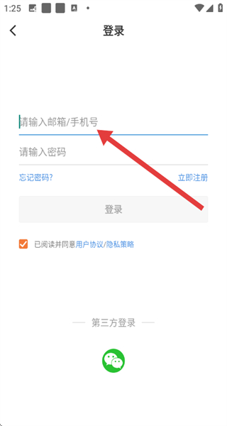 4、在登录界面,输入邮箱/手机号和密码后,点击登录按钮,完成登录操作。
