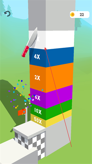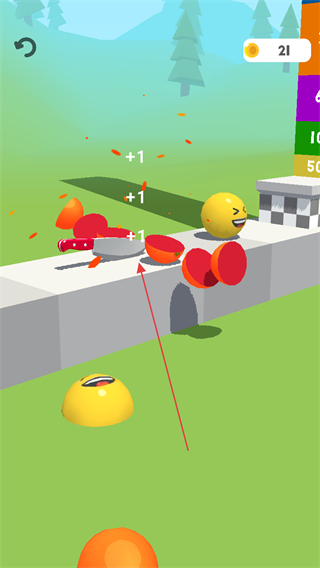 4、到达终点后,切割带有倍数标识的方块柱,获取高额积分和金币奖励。