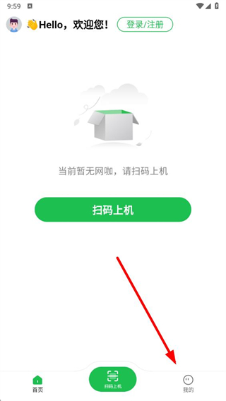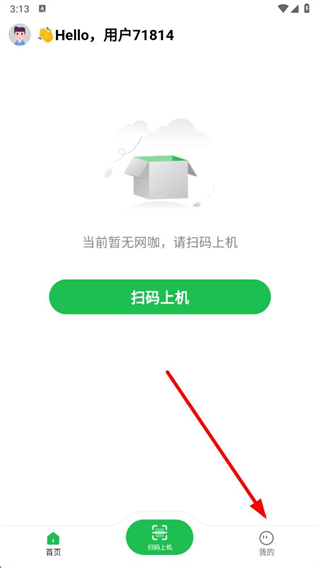1、打开趣网咖app,在首页点击右下角我的选项,进入个人页面。