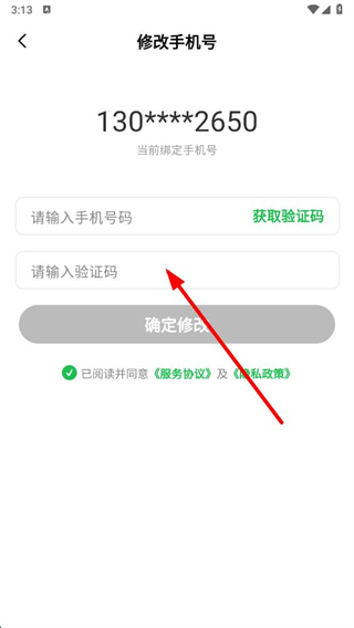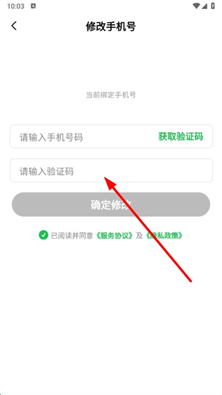 4、在修改手机号页面输入新手机号码和验证码,点击确定修改即可完成手机号码修改。