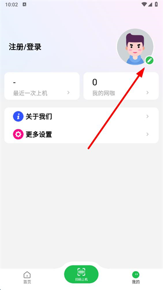 1、打开趣网咖app,在首页点击登录注册按钮,进入登录注册页面。