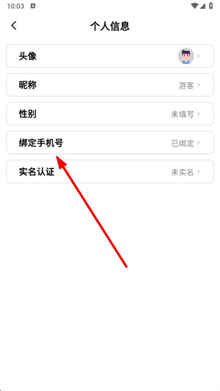 2、在个人信息页面,找到绑定手机号选项并点击。