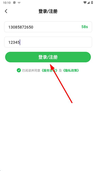 3、输入收到的验证码后,点击登录注册按钮完成注册及登录操作。