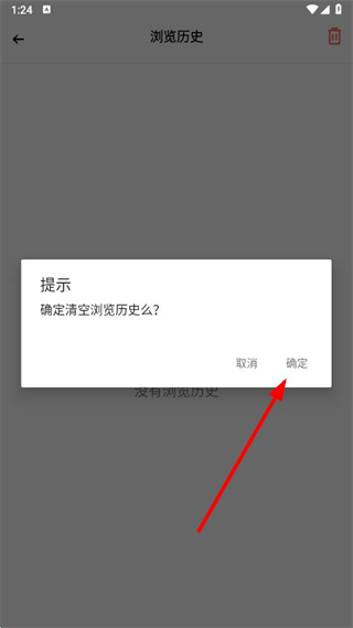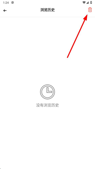 3、在浏览历史界面,点击右上角垃圾桶图标。