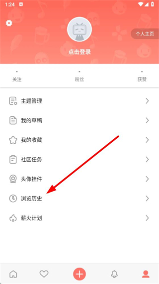 2、在个人中心界面,点击浏览历史,进入浏览历史界面。