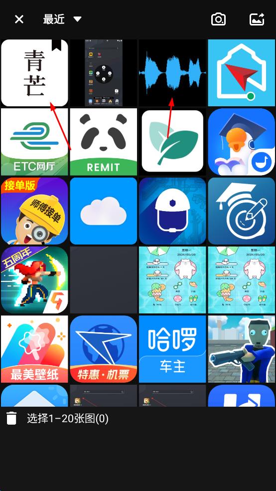 2、在图片选择页面,选择1-20张图片。