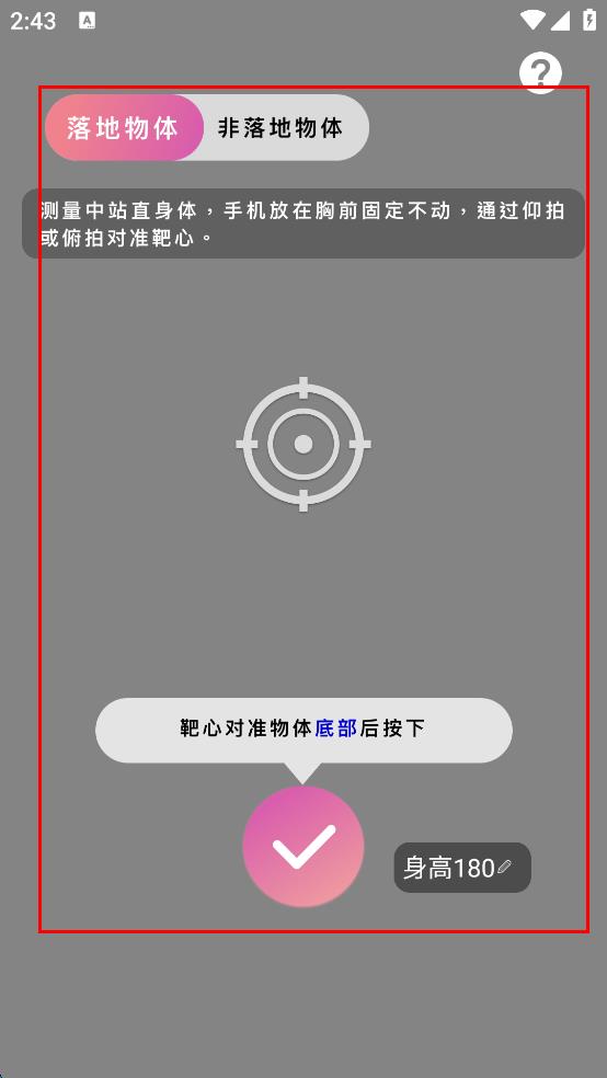 2、返回首页点击AR测距离,按照提示靶心对准物体底部后按下确认。