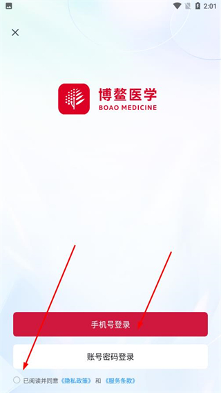 2、在登录页面,勾选隐私政策,选择手机号登录。