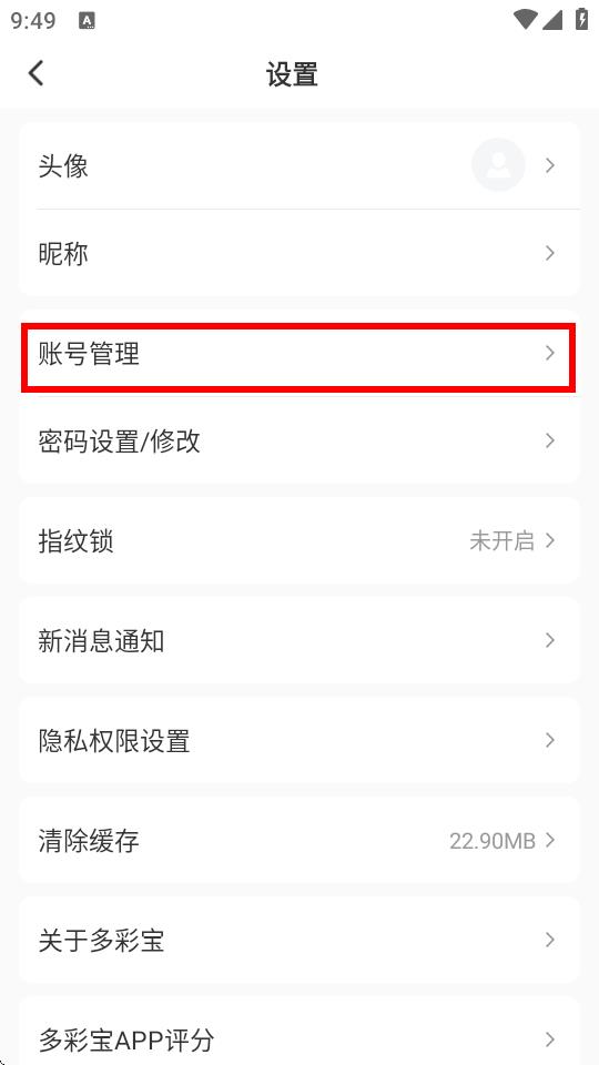 3、在设置界面里,找到并点击账号管理选项。