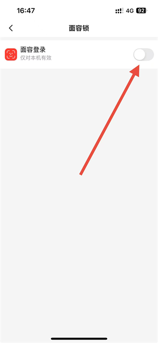 4、在面容锁页面中,开启面容登录的开关,完成人脸识别,即可完成设置。