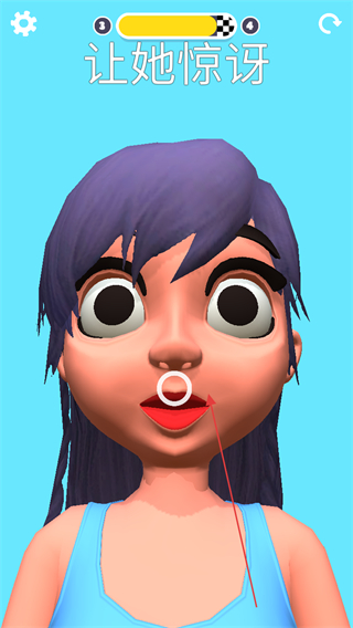 1、根据关卡要求让她惊讶,依次调整人物的眼部、眉部、唇部等部位,使其呈现惊讶的表情。