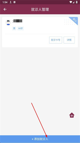 3、在就诊人管理页面,点击+添加就诊人按钮。