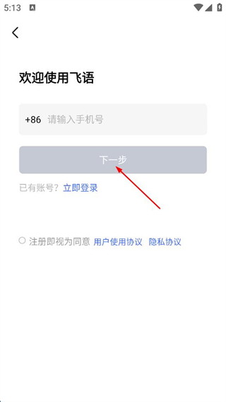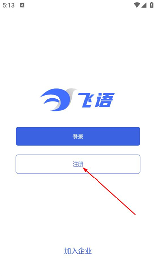 2、随后我们在登录注册界面,点击注册,进入飞语注册流程。