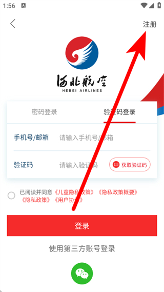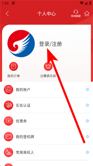 1、打开河北航空,在首页点击个人中心,进入个人中心页面。