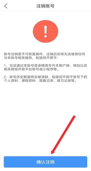 4、在注销账号说明页面,点击确认注销,完成账号注销的操作。