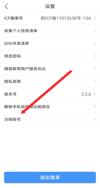 3、在设置的页面,点击注销账号按钮,进入注销账号说明页面。
