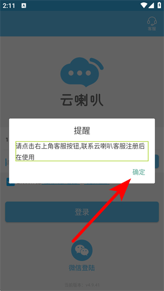 3、没有注册的账号需要按照提示点击客服按钮,联系客服完成注册。