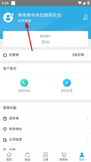 2、在个人页面,点击点击登录区域,进入登录页面。